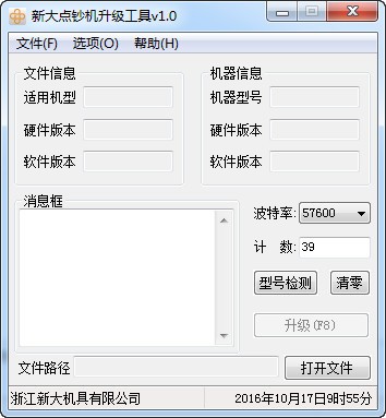 8、单击界面的“打开文件”按钮,找到解压的后的文件夹“里面的升级文件”。读入下载的升级程序。(如保存在电脑桌面)。