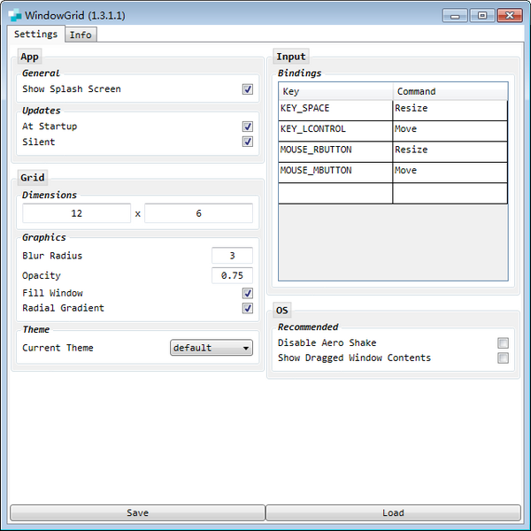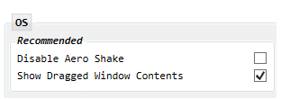 在其设置中可以快速更改部分系统设置,Aero Shake(晃动窗口最小化其它窗口)和拖动窗口时是否显示窗口内容。