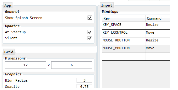 由用户决定是否更改窗口大小,窗口会自动贴合到网格。支持鼠标及按键操作,桌面网格数量及快捷键均可在设置中更改。